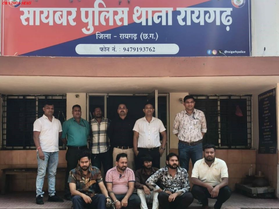 थाना रायगढ़ ने कार्रवाई करते हुए मितेश सोनी, विजय चंद्रा, अजय साहू, अभय यादव और सचिन चौहान को गिरफ्तार किया है। आरोपियों के कब्जे से 6 मोबाइल फोन और 1 लैपटॉप जब्त किए गए हैं।