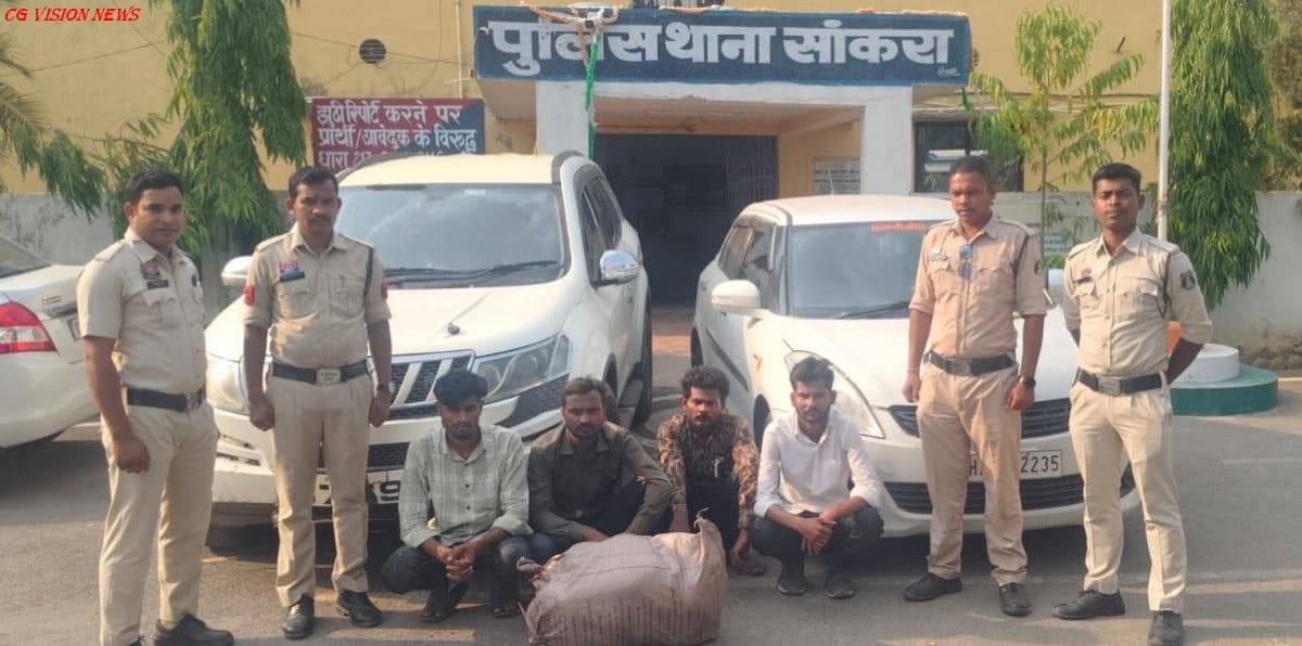 पुलिस को मुखबिर से सूचना मिली थी कि कटक (उड़ीसा) से महाराष्ट्र के जालना की ओर गांजा तस्करी की जा रही है। सूचना के आधार पर गुरु घासीदास चौक, एनएच-53 सांकरा तिराहा के पास घेराबंदी कर दो वाहनों को रोका गया। जांच के दौरान एक एक्सयूवी और एक डिजायर कार से करीब 12.563 किलोग्राम गांजा बरामद हुआ।