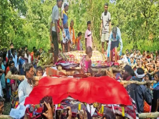 रायपुर।आंध्रप्रदेश के अल्लूरी सीतारामराजू जिले के मारेडुमिल्ली जंगल में मंगलवार को हुई मुठभेड़ में मारे गए नक्सली हिड़मा और उसकी पत्नी राजे के शव गुरुवार सुबह उनके गृहग्राम पुवर्ती लाए गए। गांव में दोनों के शवों को हिड़मा के घर ले जाकर आदिवासी परंपरा के अनुसार अंतिम संस्कार की पूरी प्रक्रिया संपन्न कराई गई। परंपरा के अनुसार, दोनों को सफेद नहीं बल्कि लाल कफन पहनाया गया, जो कि इस समुदाय की विशेष अंतिम रीति है।