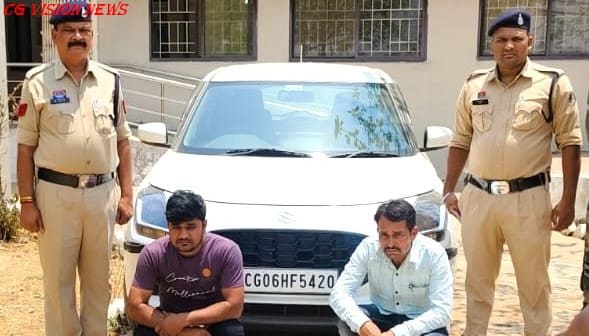 पुलिस को मुखबिर से सूचना मिली थी कि भुरसापाली रोड की ओर से एक स्विफ्ट कार में अवैध शराब ले जाई जा रही है। सूचना पर पुलिस टीम ने तत्काल नाकेबंदी कर संदिग्ध वाहन को रोका। पूछताछ में आरोपियों ने अपना नाम भोलाराम पटेल (खपरीडीह) और सुरेन्द्र चौधरी (खैरमाल, सरायपाली) बताया। वाहन की तलाशी लेने पर कार से 20 नग मैकडावल और 10 नग सिम्बा बियर सहित कुल 10.100 लीटर बरामद की गई।