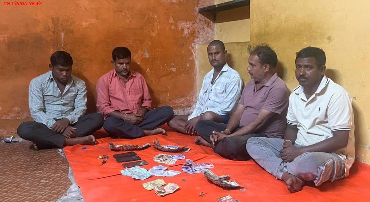 पुलिस से मिली जानकारी के अनुसार सिटी कोतवाली थाना क्षेत्र के मोहरीभाठा में कुछ लोगों के द्वारा जुआ खेलने की सूचना मिली थी। सूचना मिलते ही पुलिस टीम ने मौके पर पहुंचकर रेड कार्रवाई की। पुलिस को देखकर वहां मौजूद लोग भागने का प्रयास करने लगे, लेकिन पुलिस ने घेराबंदी कर पांच लोगों को पकड़ लिया।